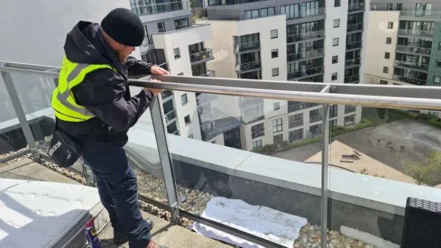 Structural repair of concrete balconies often prompts the replacement of the guards, often using laminated or tempered glazing systems as part of a larger facade renewal project.